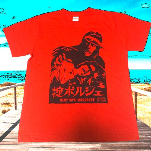 掟ポルシェTシャツ(怖い方)赤です。共産党員以外の方もお求め可能です。