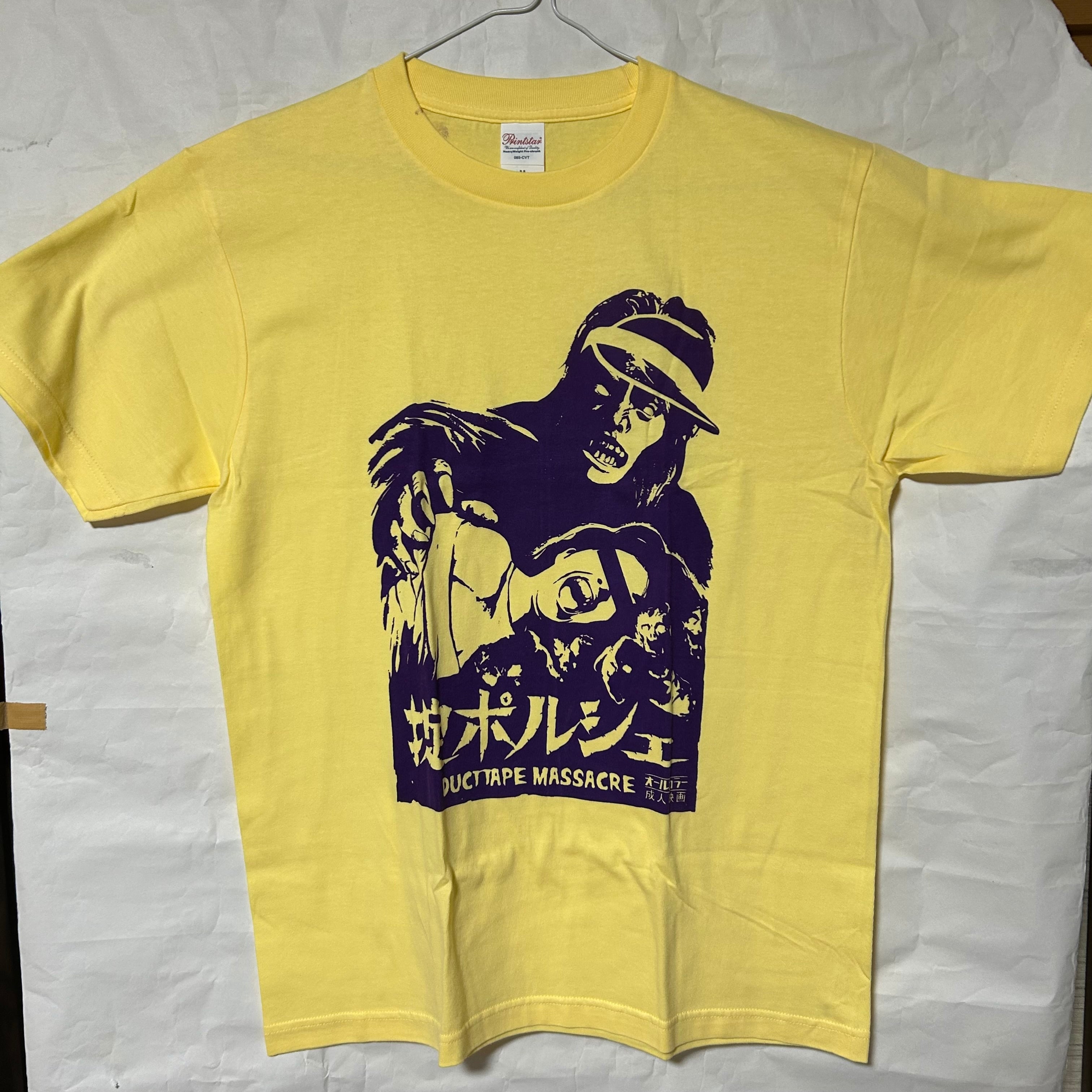 掟ポルシェTシャツ(怖い方)ライトイエローです。目に痛い色なので、基本ナメた場所へ行く時用に。